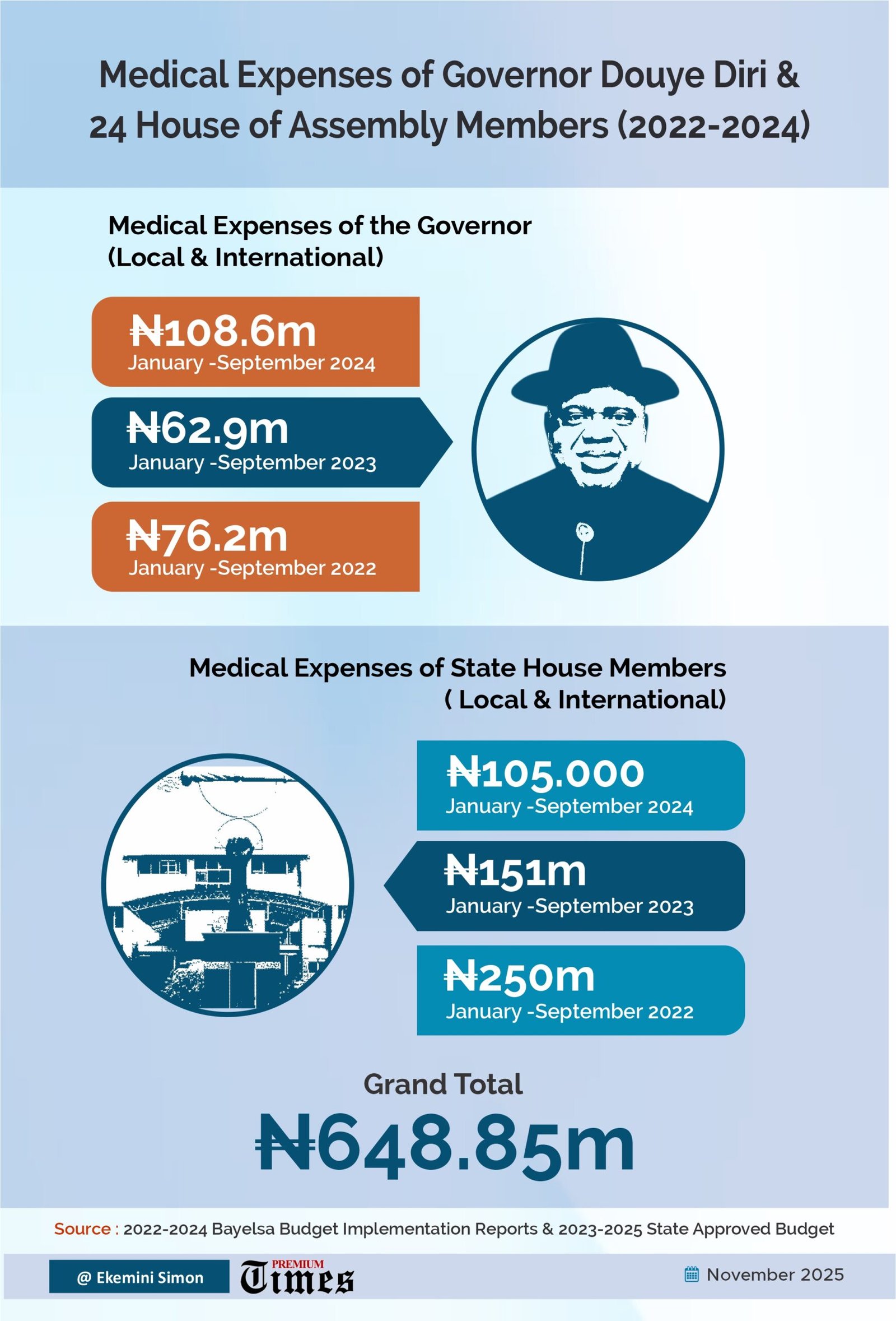 In that same year, however, it disbursed N213.9 million for another international and local medical expenses of the governor and 24 house members.
