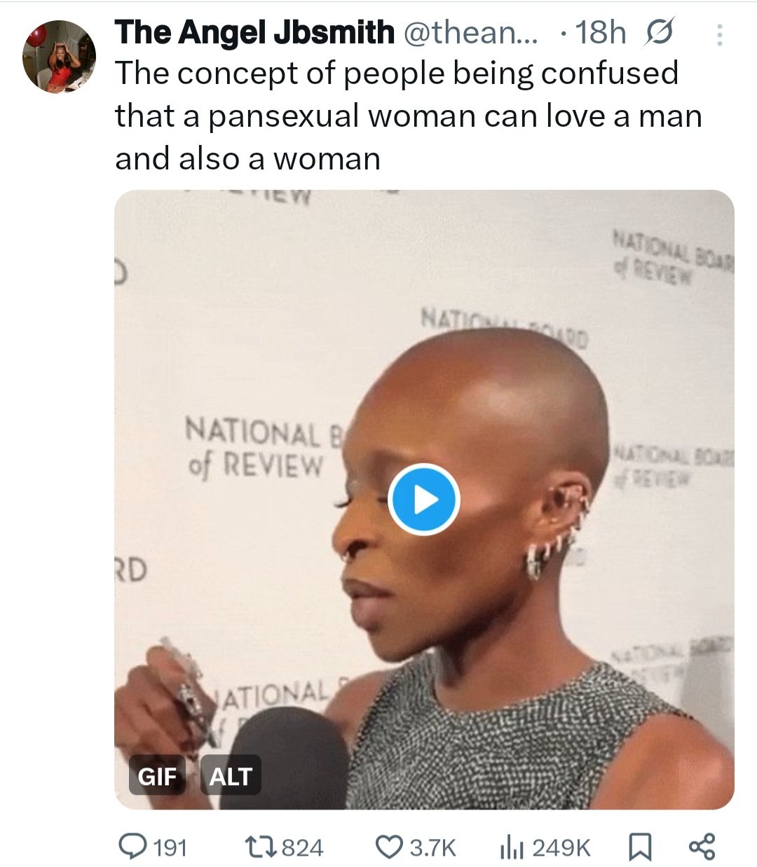 She wrote on X: “The concept of people being confused that a pansexual woman can love a man and also a woman.”