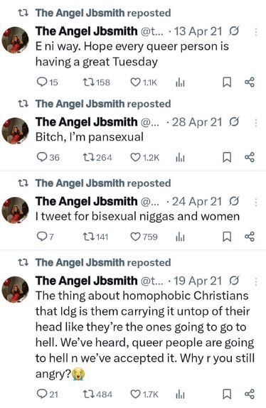 Angel went on to share tweets she made back in 2021 in which she identified as queer.