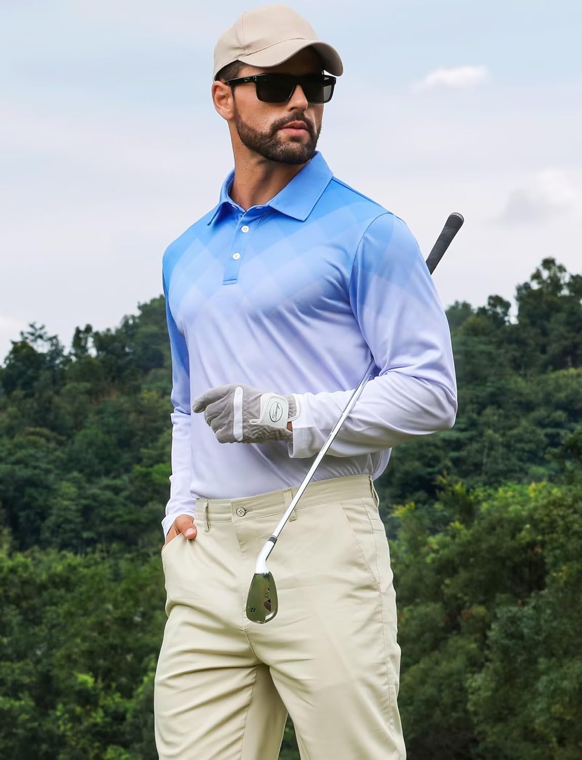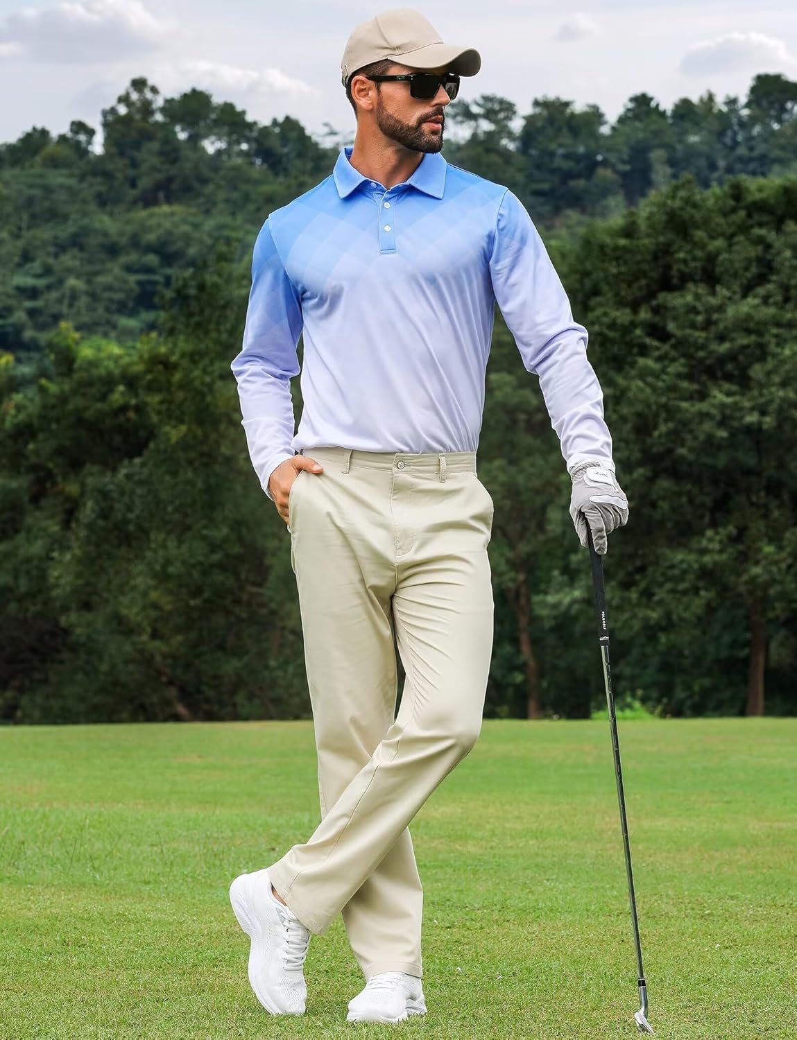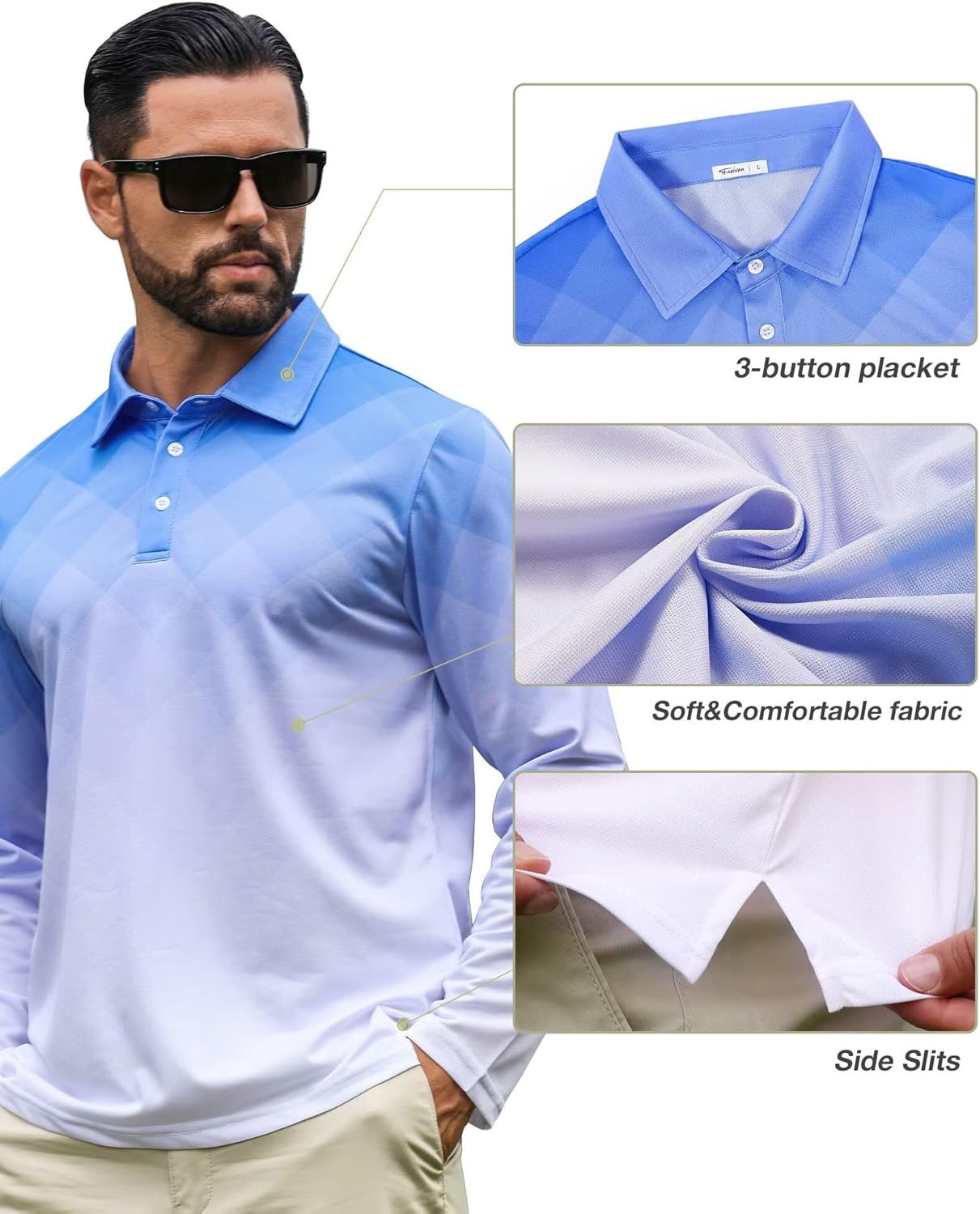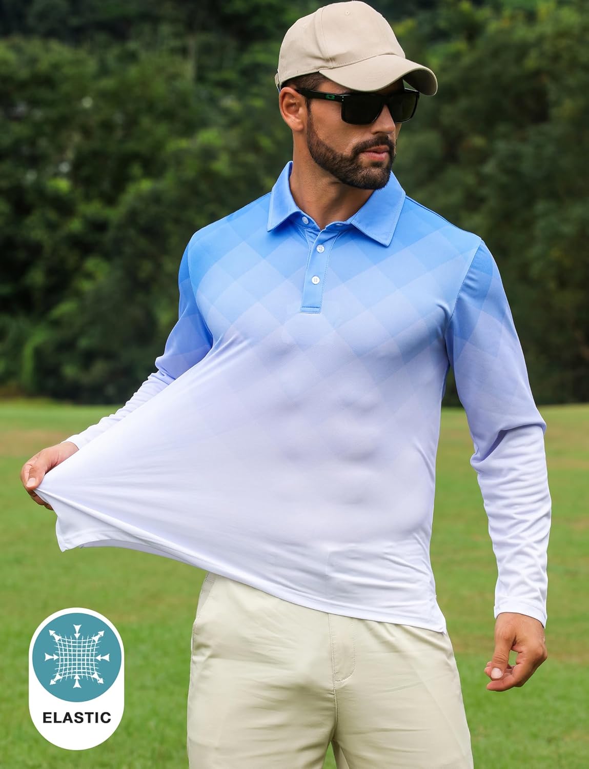 ELETOP Mens Long Sleeve Polo Shirts with Collar Classic Button Performance Moisture Wicking Dry Fit Casual Golf Shirt for Men