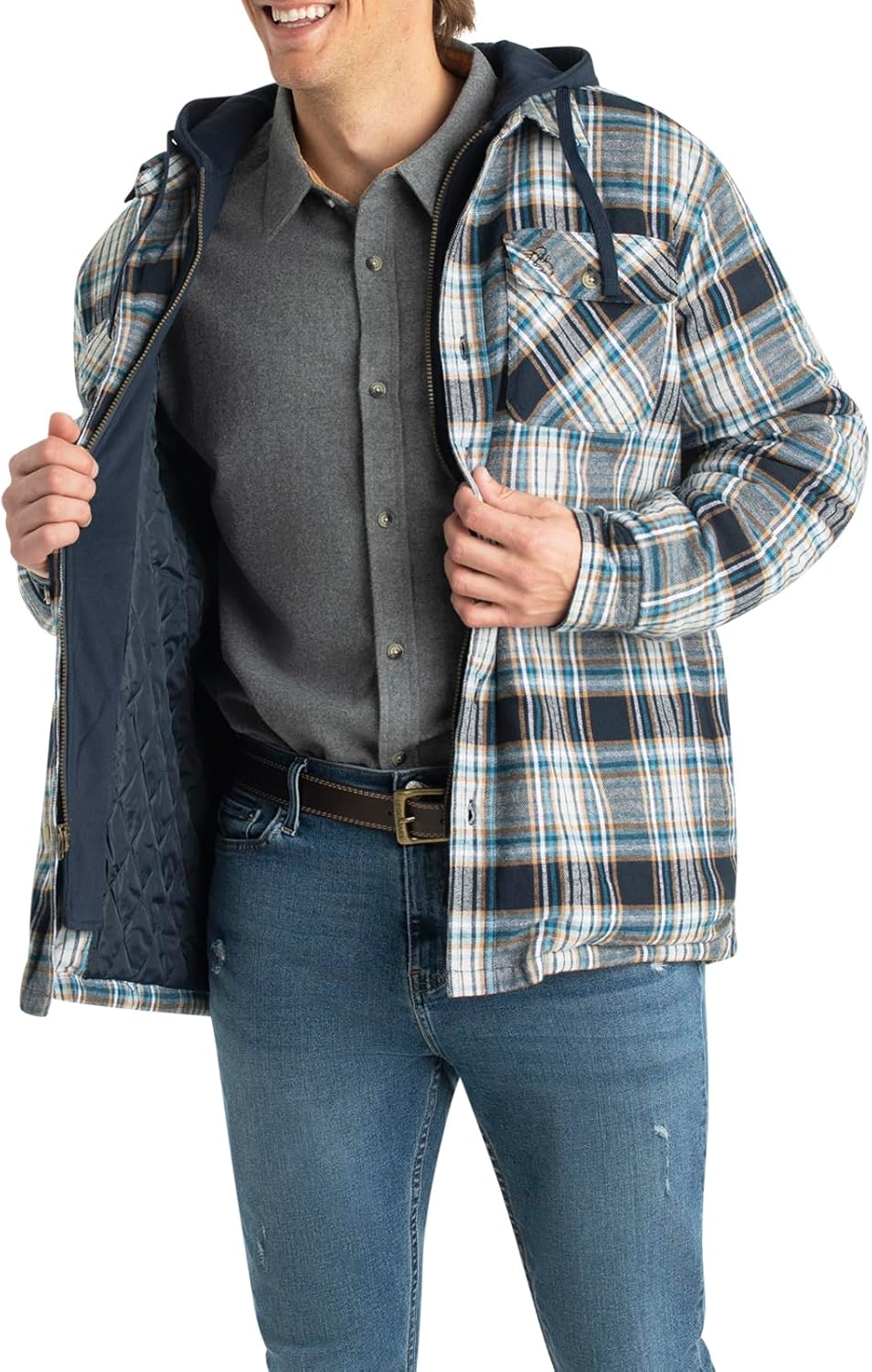 Can’t wait for that first cool fall day? Then you’ll love this soft washed 100% cotton yarn-dyed flannel hooded shirt jac. Featuring quilted satin lined body and sleeves with 130 gm of poly-fill insulation, zippered entry placket and double lined fleece hood – plus, convenient side hand warming pockets. Finished with Legendary buttons and Signature Buck embroidery.Size Instructions: