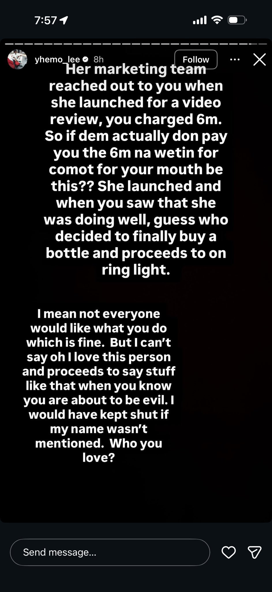 He also claimed that the brand’s marketing team had previously reached out to Opeyemi for a launch review, but the critic allegedly demanded ₦6 million. Yhemolee suggested that the negative review only came after the business started doing well without him.