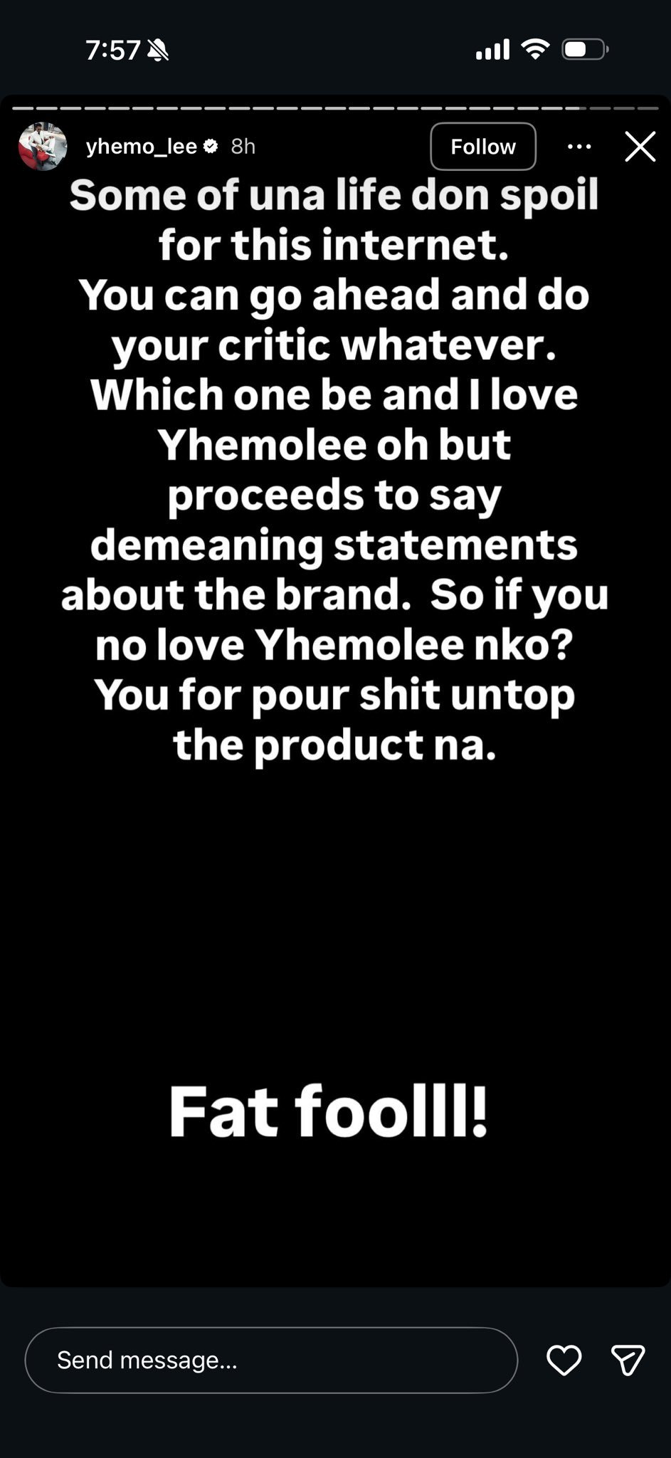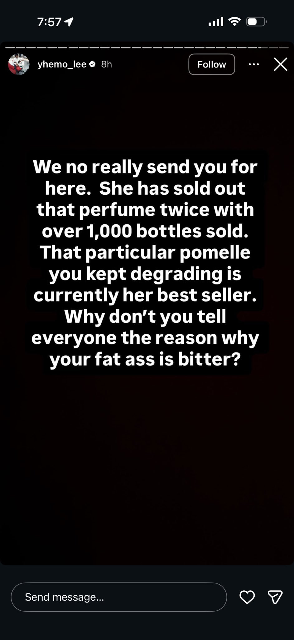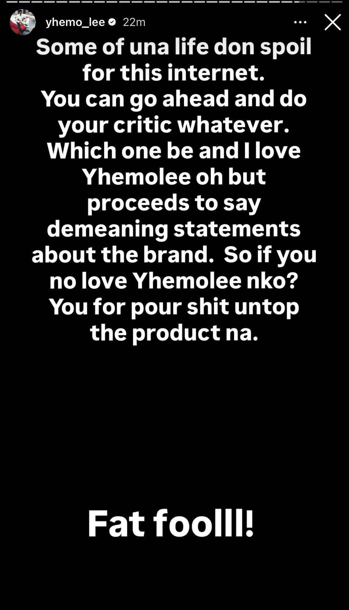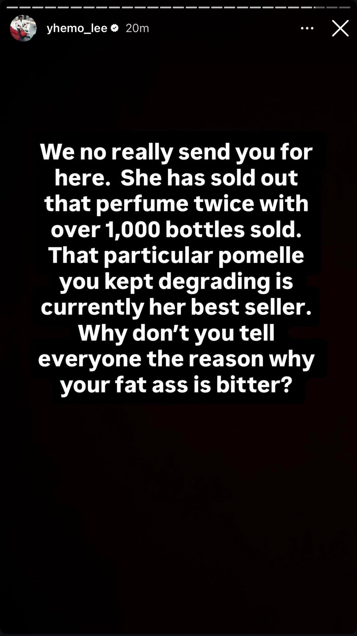 In a series of heated posts, Yhemolee accused Opeyemi of pretending to like him while making what he described as demeandng and unnecessary comments about the perfume.