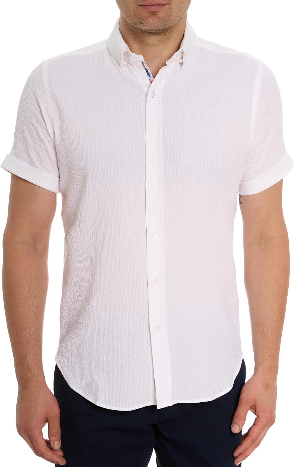 The Reid Short-Sleeve Button-Down Shirt will make the perfect addition to any wardrobe. This long-sleeve designer dress shirt is casual yet dressy enough for almost any occasion and features a classic fit, a point collar, a button front, and a stylish patterned design in white, blue, or pink. Tuck it into a pair of dress pants and wear it with a blazer for a business-casual look, or pair it with denim and wear it over a tee for a night out. This collared men’s shirt will become a wardrobe staple for your professional and everyday outfits.